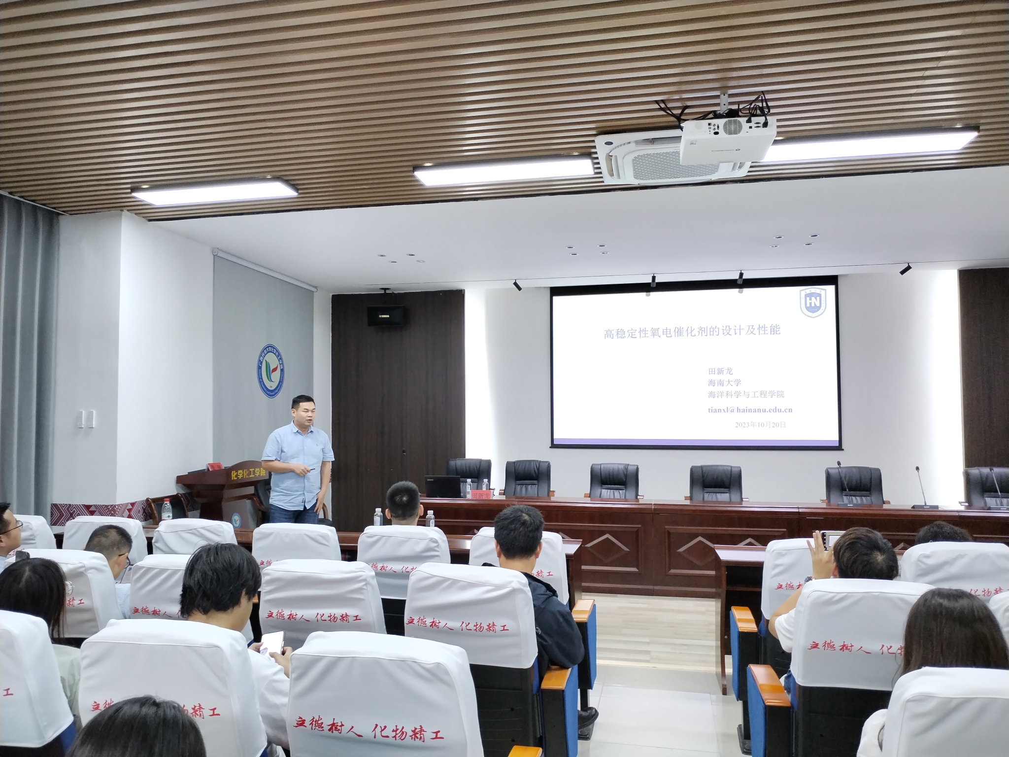 10月20日下午,海南大学田新龙教授应邀为我院师生作题为“高稳定性氧电催化剂的设计及性能”的学术讲座。活动由学院副院长刘绍刚主持。